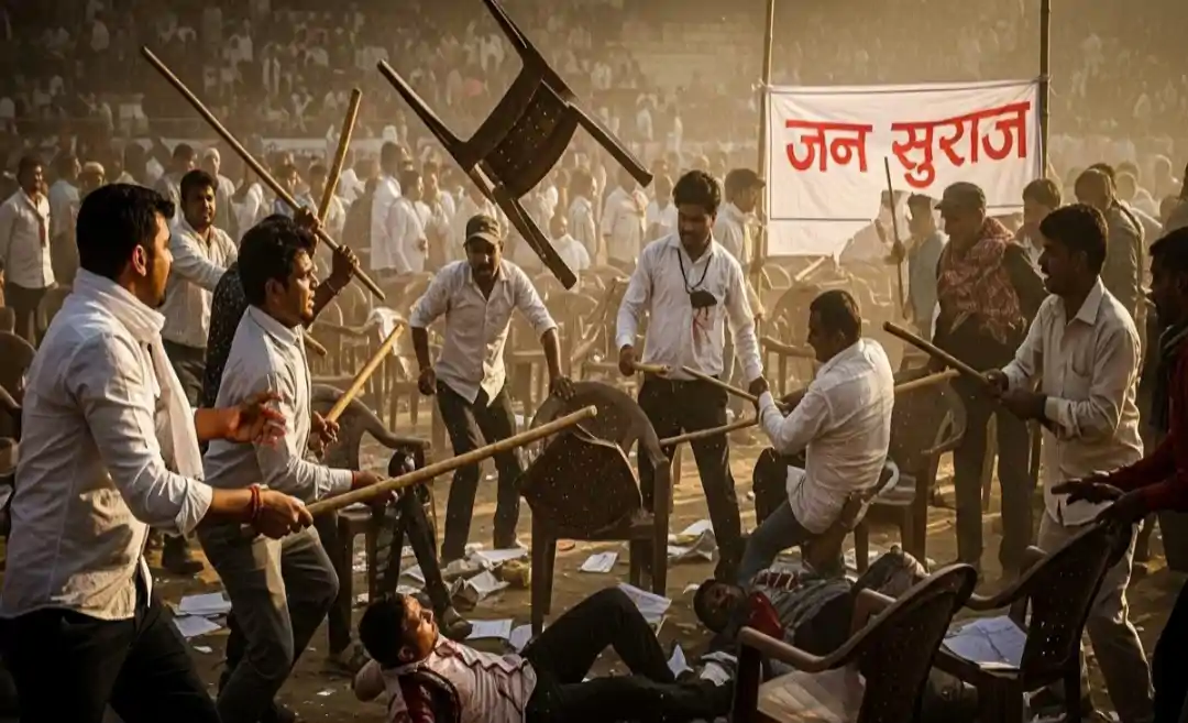 प्रशांत किशोर की 'जन सुराज' पार्टी का एक कार्यक्रम उम्मीदवार चयन को लेकर हुए विवाद के बाद रणक्षेत्र में तब्दील हो गया. दरभंगा जिले के बहादुरपुर विधानसभा क्षेत्र में आयोजित इस बैठक में बोगस वोटिंग के आरोप पर दो गुटों के बीच जमकर मारपीट हुई. जिसमें लाठी-डंडे और कुर्सियां चलीं. इस हिंसक झड़प में छह लोग घायल हो गए, जिनमें से एक का सिर फट गया.