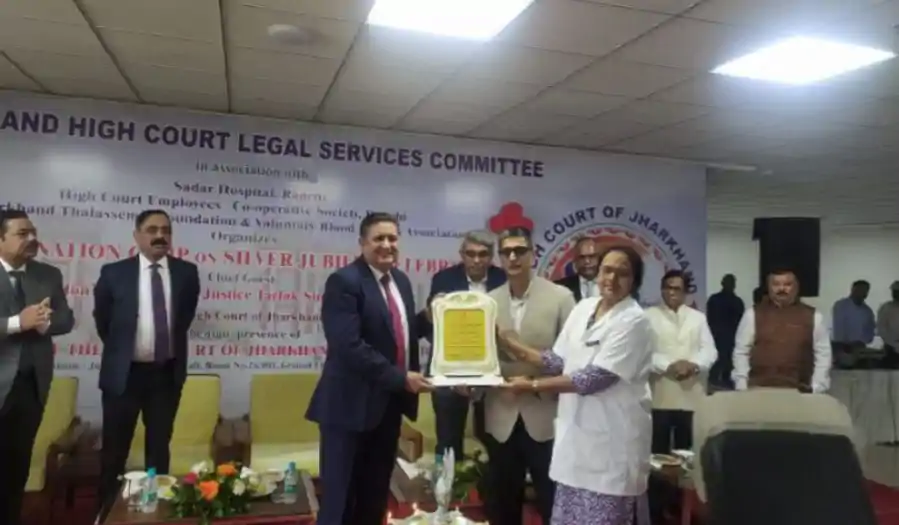 झारखंड हाईकोर्ट के सिल्वर जुबली समारोह के अवसर पर सोमवार को अदालत परिसर में रक्तदान शिविर का आयोजन किया गया। इस विशेष कार्यक्रम की शुरुआत मुख्य न्यायाधीश समेत हाईकोर्ट के अन्य न्यायाधीशों द्वारा की गई।