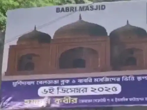 पश्चिम बंगाल के मुर्शिदाबाद जिले के बेलडांगा क्षेत्र में मंगलवार देर रात बाबरी मस्जिद के शिलान्यास से जुड़े पोस्टर लगाए गए, जिनमें 6 दिसंबर को नींव रखने का कार्यक्रम घोषित किया गया है। पोस्टरों में तृणमूल कांग्रेस (TMC) विधायक हुमायूं कबीर को आयोजन का मुख्य जिम्मेदार बताया गया है।