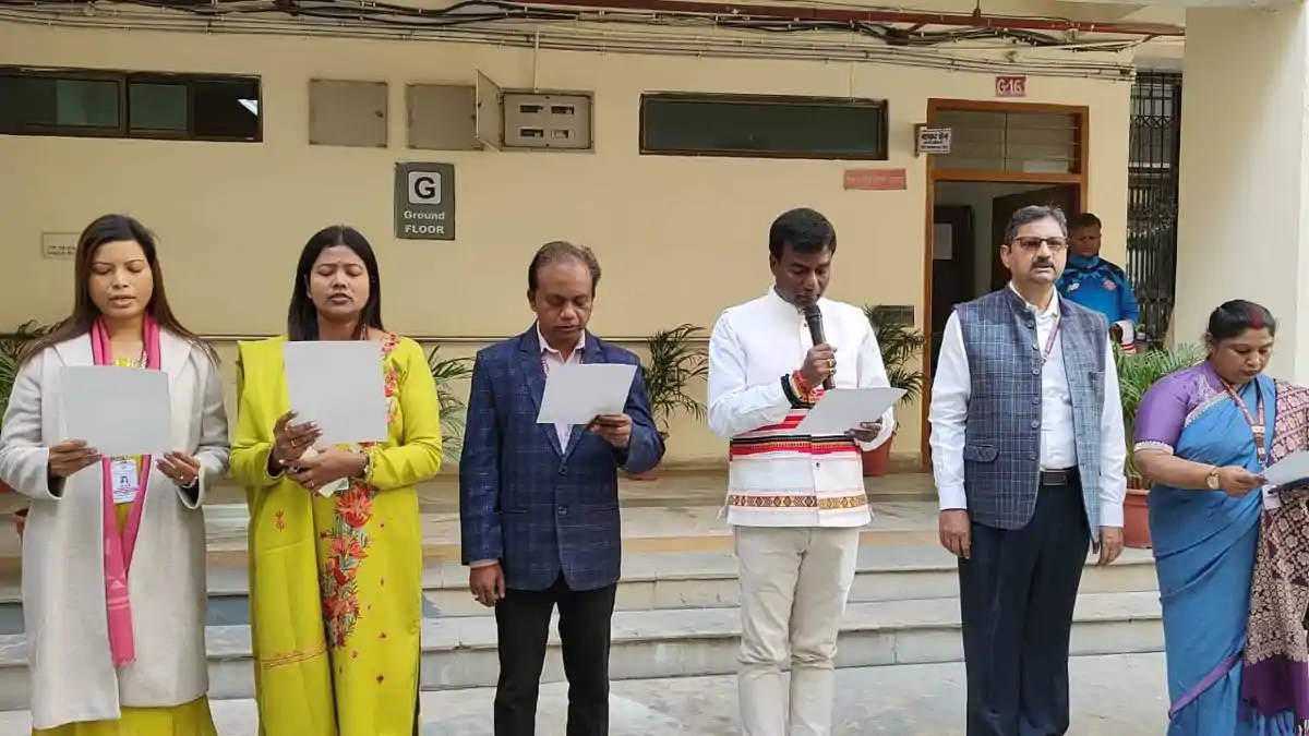 उपायुक्त–सह–जिला दंडाधिकारी मंजूनाथ भजन्त्री की अध्यक्षता में आयोजित इस कार्यक्रम की शुरुआत भारतीय संविधान की प्रस्तावना के सामूहिक वाचन से हुई। कार्यक्रम में उप विकास आयुक्त सौरभ भुवनिया, अपर जिला दंडाधिकारी (विधि-व्यवस्था) राजेश्वर नाथ आलोक, अपर समाहर्ता रामनारायण सिंह, जिला ग्रामीण विकास अभिकरण के निदेशक सुदर्शन मुर्मू, परियोजना निदेशक ITDA एवं जिला कल्याण पदाधिकारी संजय कुमार भगत सहित कई वरीय अधिकारियों और विभिन्न विभागों के कर्मचारियों ने हिस्सा लिया। जिला जनसंपर्क पदाधिकारी उर्वशी पांडेय, जिला पंचायत राज पदाधिकारी राजेश कुमार साहू, जिला समाज कल्याण पदाधिकारी सुरभि सिंह समेत कई अधिकारी भी मौजूद रहे।