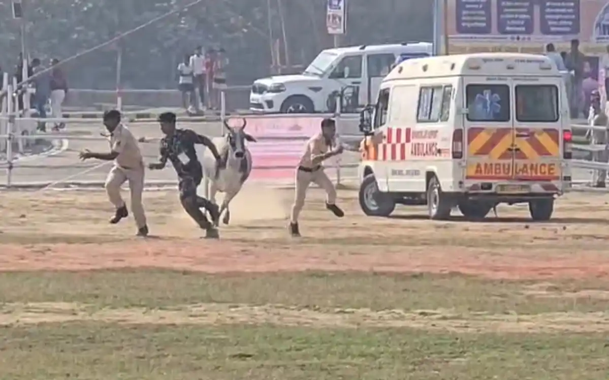 बेगूसराय में सीएम नीतीश के आगमन से पहले सुरक्षा में चूक, हेलीपैड पर पहुंचा बैल, पुलिसकर्मियों को दौड़ाया